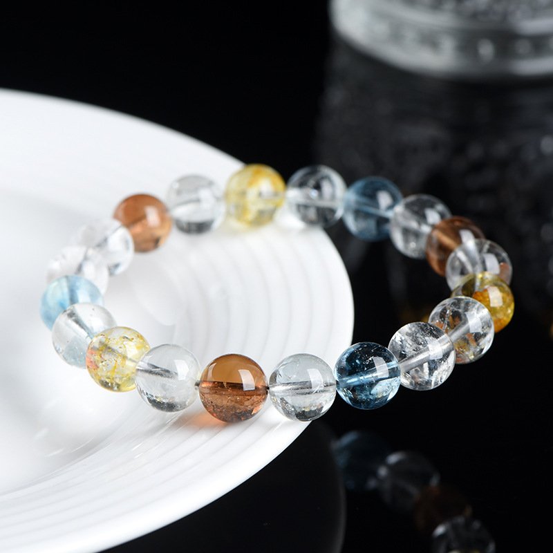 Ice-type multicolor topaz round bead bracelet 6mm